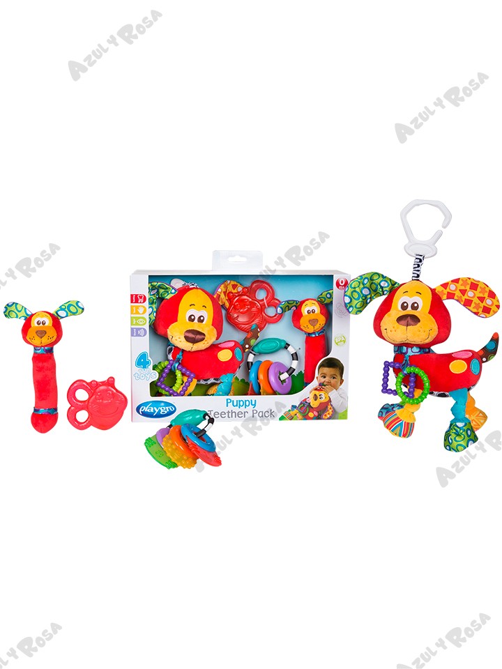 ¡4 juguetes de desarrollo infantil en 1 fantástico paquete! El paquete de mordedores para cachorros ofrece infinitas oportunidades para que los bebés aprendan, crezcan y descubran.