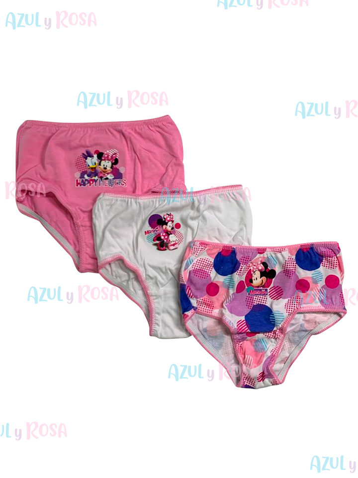 Set de 3 panties con diseño de Minnie Mouse T4 Multicolor. 100% algodón. Súper suave. Cintura elástica suave. Lavable en la lavadora. A tu pequeño le encantará llevar esta cómoda ropa interior con sus personajes favoritos.