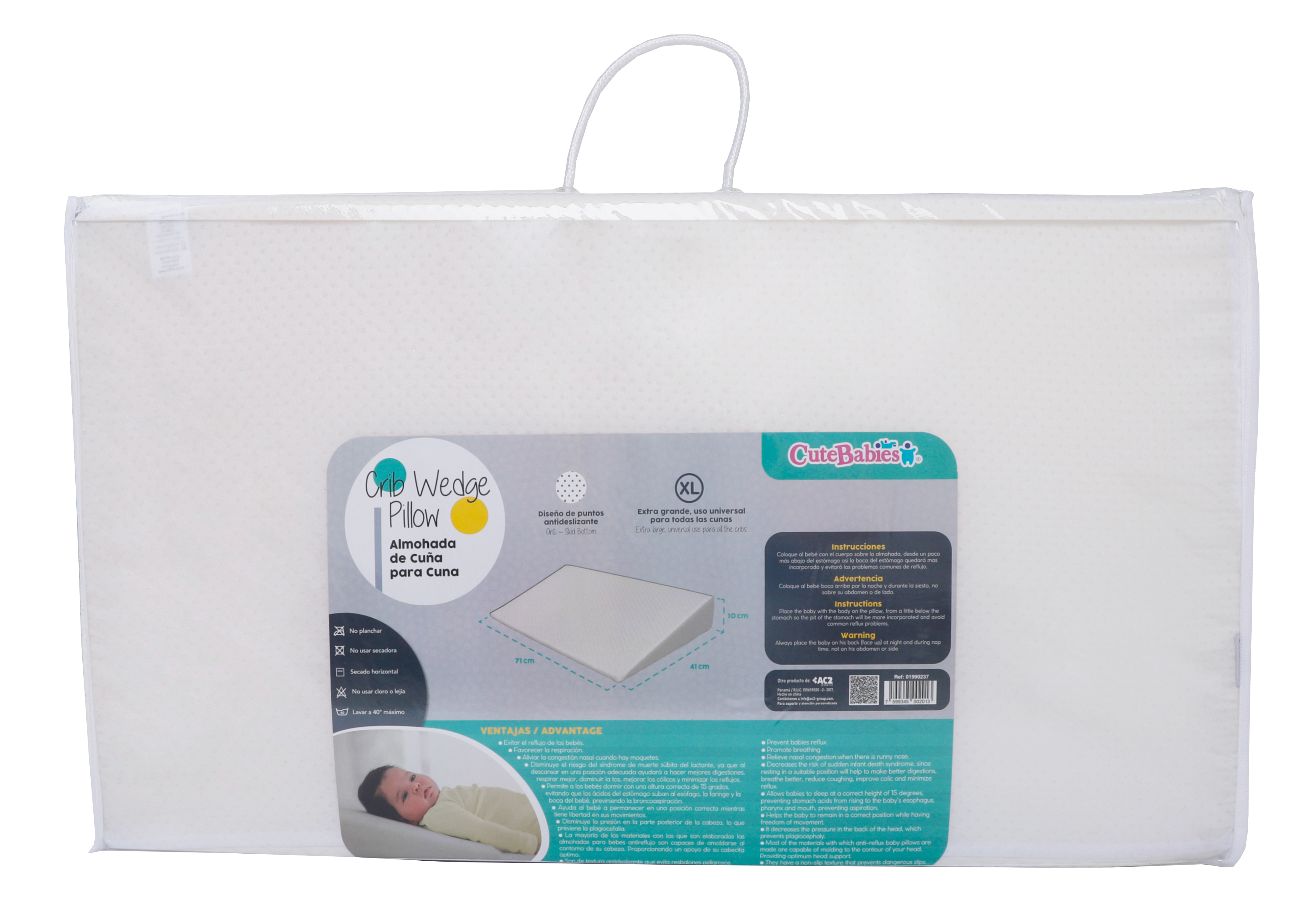- Cuenta con dos formas de uso: 1.Debajo del colchón de cuna. 2.Como almohada para elevar al bebé directamente.