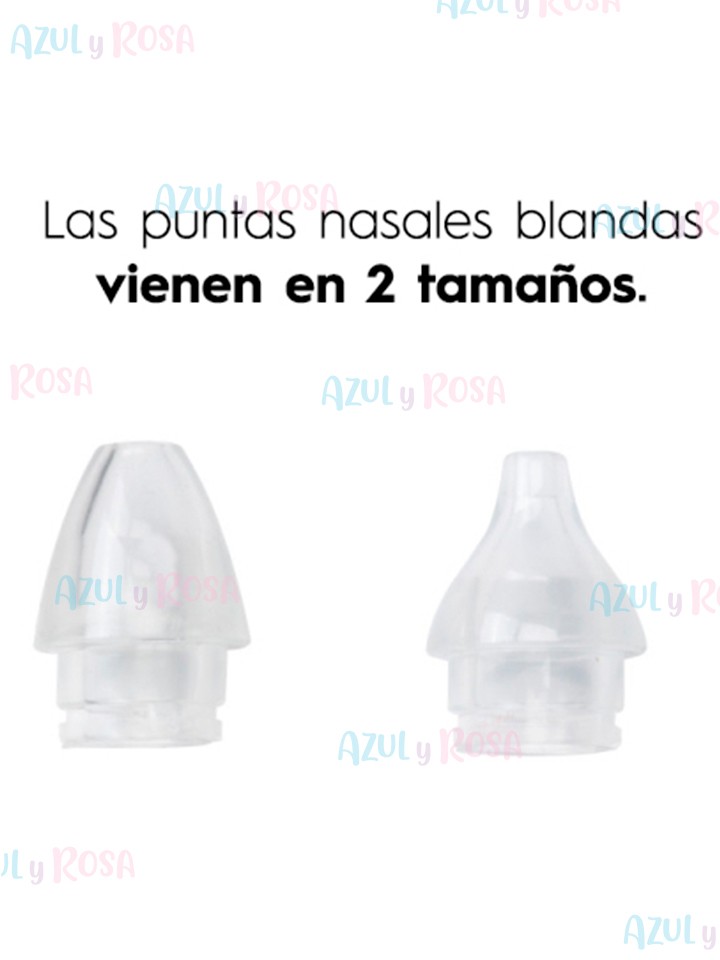 Las puntas nasales suaves vienen en dos tamaños diferentes, por lo que puede continuar usando el aspirador nasal a medida que su bebé crece.